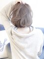 カジュアル、お手入れ簡単な大人かわいいLobスタイル。カラーはプラチナ、アッシュ、バイオレットを入れ、シナモングレージュに!
