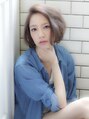 前下がりベースのエアリーショート!長めの斜めバングで小顔な大人かわいいヘアに☆カラーも透明感のあるアッシュベージュカラーで軽さをツヤをセミウエットな質感に仕上げるのも◎スタイリングが苦手は方はパーマもオススメ