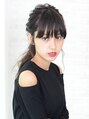 全体にウェーブをつけ、ハーフアップの状態でくるりんぱした後、両サイドをねじりながら真ん中でまとめすっきりとした印象のお呼ばれアレンジ。程よく全体をほぐし、まとまりすぎないようにすることと、、アクセサリーの使い方がポイント!【EARTH新松戸店】