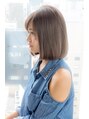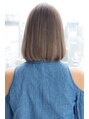 ナチュラルなボブのスタイルです。ブローだけでさらっとまとまるように調節していますよ!!お色はネイビーベージュで透明感とツヤ感を演出します。くせや広がりが気になる方は縮毛矯正やストレートパーマをご相談ください!!