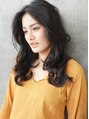黒髪、もしくはモノトーンアッシュのロングウェーブ スタイル。レイヤーで動きを出しウェーブをつけ、センターパートにスタイリングすることでロマンチックなフォークロアの雰囲気を。