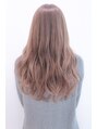 全体はおさまりのよいローレイヤー重めスタイル♪ゆるカールが無造作感と女性らしさを出します♪Aラインシルエットで透け感バングのサイドパートスタイル♪