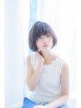 ショートボブに軽く外ハネのラフ感のあるラクチンスタイルです♪透け感のあるパープルアッシュで外国人風な透明感をふんだんにプラスしています