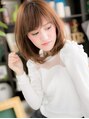 ふわミディとくびれミディの融合したスタイル。厚めバングで目力も印象的で伸ばしかけの方にもオススメの大人かわいいミディアムヘア☆斜めバングで小顔効果を狙うなら動くたびにニュアンス変わる3Dカラーもプラスで♪