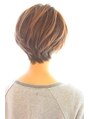 大人可愛いのショートヘアスタイル。頭の丸みが綺麗に見え、襟足がスッキリ、耳にかけれる、うざバングボーイッシュになりすぎない、女性らしさ残るオススメスタイル!ワックスを揉み込むだけの、簡単スタイリングです。お気軽にお問い合わせください。