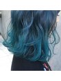 グラデーションのブルーカラー。カラーバターを使っているので髪へのダメージが少ないです♪気分やファッションに合わせて色味を決めていきます!ブリーチしていればワンカラーでできます!ブリーチは3回必須です☆