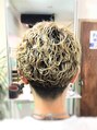 根元をあえて染めずに、強めのウェーブでセットいらず。オイル系を全体に馴染ませるだけの簡単スタイル。