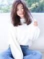 コテで柔らかく巻いてミルクスタイリングで程よくラフにゆらぐ、鎖骨下の毛先ぶ厚めニュアンスセミディ。顔周りには、わずかなレイヤーで絶妙なニュアンスに。目下レングスで、かきあげ大人スタイルも、シースルーフェミニンも叶えるリバーシブルバングが◎
