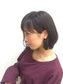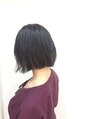 ブツ切りのラインを残した前下がりボブ。カラーはアッシュベースにインナーカラーで内側に明るいグレーを入れて耳にかけた時にチラっと見える様に。