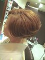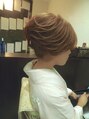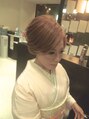 ヘアスタイルはネープスッキリのバックにボリュームを出したスジ盛りスタイルです。フロントは少し立ち上げてトップと馴染ませて流しました。