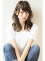 ゆったりとした脱力系ウェーブが優しい女性らしさを最大限に引き出してくれるセミロングスタイル。顔型を美しくみせる前髪で小顔にも◎。カラーは赤味を抑えて柔らかさを感じるイノセントカラーでグレージュに。斜めバングで大人かわいい感じにも。