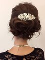 トップにボリュームを出したアップスタイルです。長さが肩ぐらいですが、後頭部ぐらいにボリュームと毛先の動きを出すことでエレガントに仕上がります。