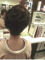 ボリュームたっぷりのスジ盛りの夜会を作り前髪はほんの少し立ち上げてトップと一緒に流しました。前髪を流した大人キレイなスタイルがとてもお似合いでした