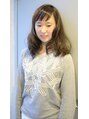 前髪はあえて深めにとって細かく間引いてシースルーバングに。ナチュラルなウェーブは32mmのコテで巻いた後しっかりほぐして。