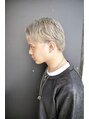 プラチナホワイトのカラーがインパクト大! その分髪型はシンプルなオールバックに前髪は立ち上げて流す。大人の雰囲気とやんちゃさとが混在するスタイル!白髪でも対応できるため世代は幅広く楽しめます!