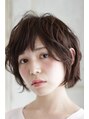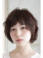 ニュアンスパーマのショートスタイル。顔周りのデザインで抜け感をプラス!前髪の長さを調節して大人カワイイにチェンジもできます。カラーはオススメのセピアブルー。