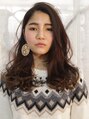 揺れ落ちるリバース系のウェーブが華やかなふんわりロング。あご下まである長めバングは、かきあげスタイルも似合います。ツヤ感のある黒髪でシックで大人っぽい雰囲気に。空気感のあるエアリーカールなので、黒髪でも重過ぎずクールビューティに。