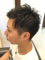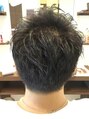 サイドのみツーブロックにしたショートスタイル。バックは馴染ませるように刈り上げないぐらいで短くしてネープレスに!前髪は上げたり下げたり出来る長さなので仕事モードとオフモードの使い分けが出来る2WAY!!服装を選ばないのでオススメです!!