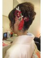 夜会巻きですっきり、カールで可愛らしさを演出しました。
