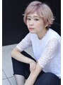 全体を2回ブリーチしています。ブリーチ後、透明感のあるナチュラルプラチナをオンカラー。ポイントカラーにペールピンクを入れてショートでも遊び心をプラス♪外国人風ブロンドヘアー☆