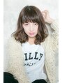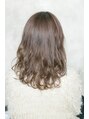 鎖骨下のレングス設定で前上りにレイヤーを入れて動きをつけやすく。毛先の動きや束感で強弱をつけ、旬のミディアムスタイル。カラーがスモーキーアッシュでツヤ、柔らかさ、透明感のある髪が実現。