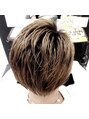 根元を外し中間からブリーチし、その後ブリーチ毛に対しアッシュベージュをONしました。インナーを刈込み、7:3パートでウェットな質感で仕上げました。