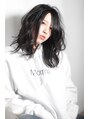 洗練された大人カジュアルスタイル。ほつれたようなウェーブと暗色カラーで都会的な雰囲気に。