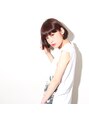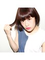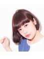 ツヤツヤの透明感のある紅茶色のカラーリング。パッツン切りっぱなしのボブにちょっと隙間をつくったバングがポイントです!