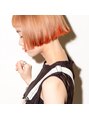 切りっぱなしボブのラインの内側にビビットオレンジでスパイスを。街で目を引くオシャレスタイルです。