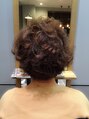 癖っ毛の髪がまとまるように大きめしっかりパーマ!癖の強いフロント&襟足はスッキリと。カラーは品のあるモーブカラーで優しく。お手入れ簡単!