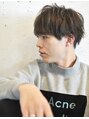 フロントに重さを残しつつ、サイドと襟足をツーブロックで刈り上げることでタイトなシルエットに調整、サイドとバックは逆に軽さを出し毛先の動きを出しやすくし、前と後ろでデザインの差をだしたマッシュスタイル。