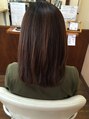 長さを伸ばしていきたいけど癖があるので根元にストレートをあて厚みも残す為に表面だけに段を入れました。
