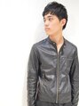 黒髪ツーブロックショート。ややマッシュベースに。ポイントパーマでトップを動くようにセット。