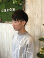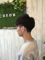 サイドからバックまでツーブロック。サイド9ミリ、バックはグラデーションで自然な刈上げにします。くせを活かして前髪のみ縮毛矯正。