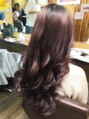ブリーチ後バイレッドとブルーバイオレットのカラーで発色させたダークバイレッドカラーです☆