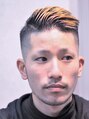 しっかりとした刈り上げと毛流れでブレない男気ヘアに。また、オールバックや前側へ立ち上げたスタイルなど自由自在にスタイリングを楽しめます。毛先はブリーチをしてますので、動かして立体感をプラスすることができます。