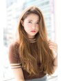 アッシュ系のカラーリングと大きなウェーブパーマで外国人のような質感を表現