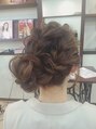 編み込みをくずして、バックサイドにまとめたスタイルです!