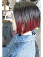 ベースは前下がりボブ。前髪なし。内側のみ1回ブリーチ後ディレクションのローズレッドをONしています。