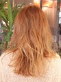 カラーはシナモンベージュ。パーマは耳下からカールが付く様にして、毛先は逃がして巻きました。