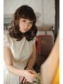 Aライン、重め、前髪ありのガーリーなヘアスタイル。パーマは人気のAirwaveで。