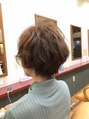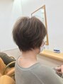 カットで毛束感を出し、襟足をスッキリ切り込んだショートボブ。パーマでルーズな動きをつけて、赤みを抑えたアッシュベージュのカラーでやわらかさをプラス。