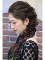 胸下までのロングを編み込みとツイストを織り交ぜてあしらったダウンスタイルです。大人かわいいイメージで作りました。飾りが無くても十分個性がでるのでおススメです。あまりスッキリアップにしたくない方は是非!
