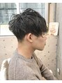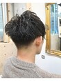 前髪は目の下の長さでラインを作り、後ろはハチ上くらいの長さにウェイトを持ってくる。その2点を繋げて前下がりのフォルムを作り、パーマで動きを出す。カラーはアッシュの8トーンをオン!