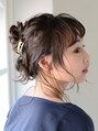 シースルーバングと後れ毛が涼やかな夏感いっぱいのメッシーバン。上下二つゆるく結んだお団子を作り、ふんわりほぐして完成。【EARTH福岡けやき通り店】