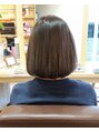 重めのボブ、暗めのカラーでも抜け感のあるイルミナカラーでナチュラルボブに!耳かけ、カールをつけて無造作スタイリングもオススメです☆