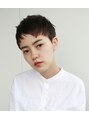 サイドとバックをを刈り上げまでいかない長さですっきりカット前髪を少しアシンメトリーにカットしデザインのアクセントに