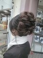 お客様の髪の長さがウエストくらいまでありましたので、全体をゆるっとバックでまとめて、毛先は少しずつピンでとめながらカールをいっぱい作りました