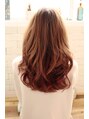 カットのベースはトップにレイヤーを入れて顔の横に来るふんわり感を☆カラーは全体をグレージュ系でやわらかさを!インナーカラーでポイントにガーネットを☆ゆるめに巻くことでラフな優しい印象に^^秋冬のカラーをさりげなく取り入れた秋冬スタイル☆