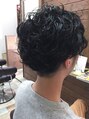 マッシュベースのカットに、強めにパーマをかけています。ワイルドかつ、柔らかさも◎